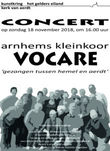 Op 18 november om 16.00 uur verzorgt het Arnhems kleinkoor Vocare een concert in "ons kerkje".